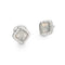 These earrings are constructed from 925 silver, exhibiting a vintage coloration. A square gemstone is centrally inlaid, displaying a soft luster that appears to be enhanced by an antiquated patina. Surrounding the gemstone are intricately textured patterns reminiscent of twisted rope, contributing to the piece's distinctive vintage aesthetic. The overall design is characterized by simplicity paired with refinement, thereby enhancing the wearer's elegance.